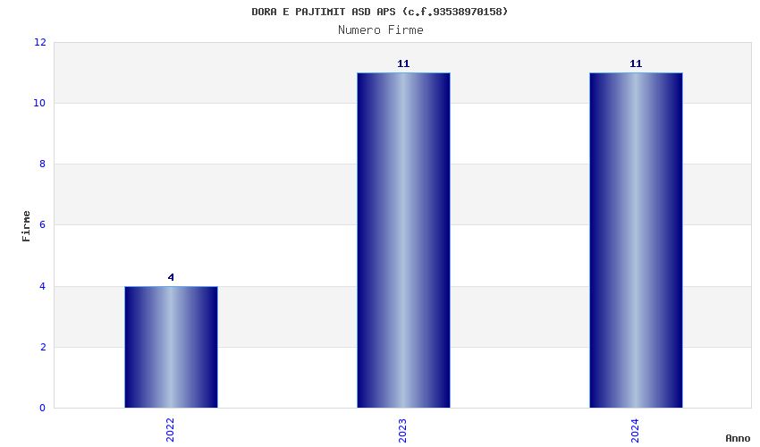 | Anno | Firme | Importi | Media | Naz. | Reg. | Prov. | Comu. |