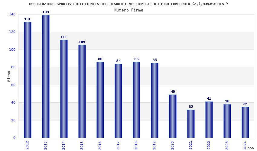 | Anno | Firme | Importi | Media | Naz. | Reg. | Prov. | Comu. |