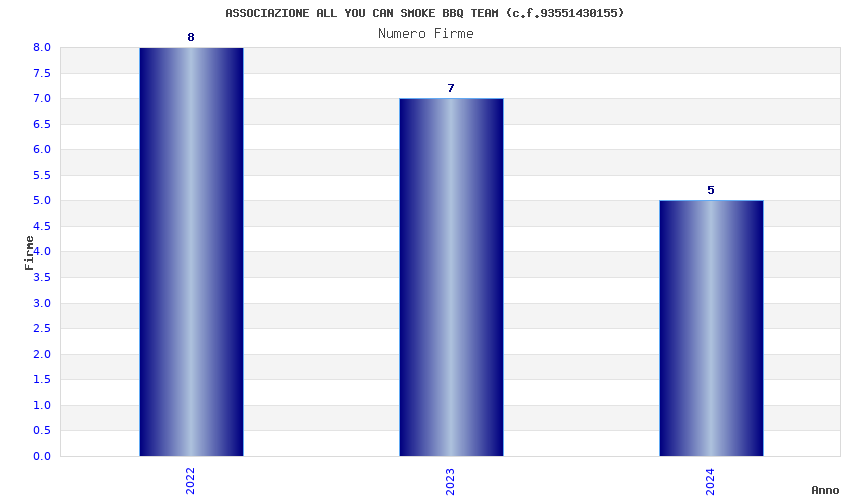 | Anno | Firme | Importi | Media | Naz. | Reg. | Prov. | Comu. |