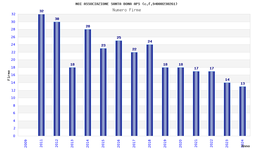 | Anno | Firme | Importi | Media | Naz. | Reg. | Prov. | Comu. |