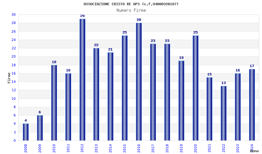 | Anno | Firme | Importi | Media | Naz. | Reg. | Prov. | Comu. |