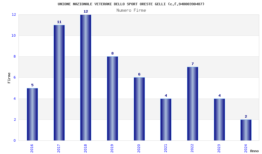 | Anno | Firme | Importi | Media | Naz. | Reg. | Prov. | Comu. |