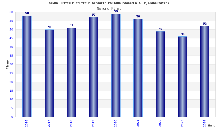| Anno | Firme | Importi | Media | Naz. | Reg. | Prov. | Comu. |