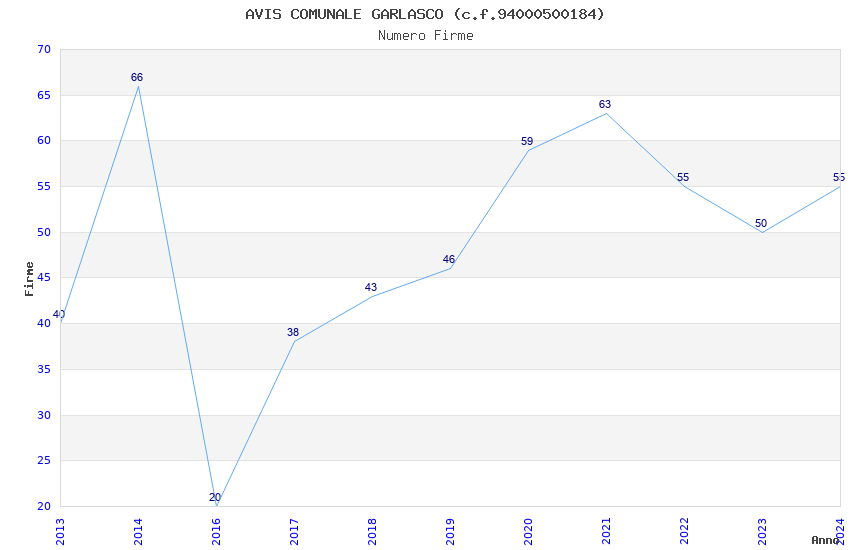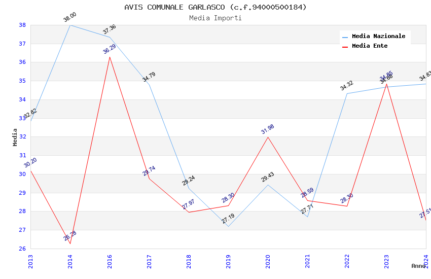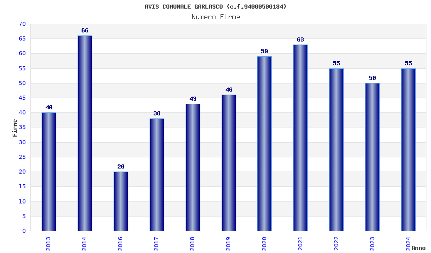 | Anno | Firme | Importi | Media | Naz. | Reg. | Prov. | Comu. |