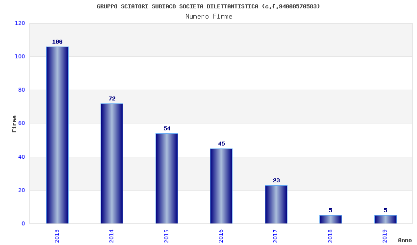 | Anno | Firme | Importi | Media | Naz. | Reg. | Prov. | Comu. |