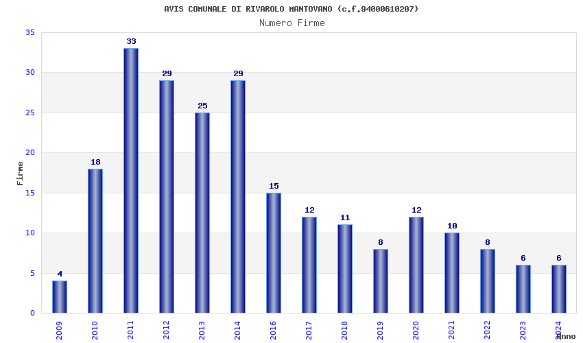 | Anno | Firme | Importi | Media | Naz. | Reg. | Prov. | Comu. |
