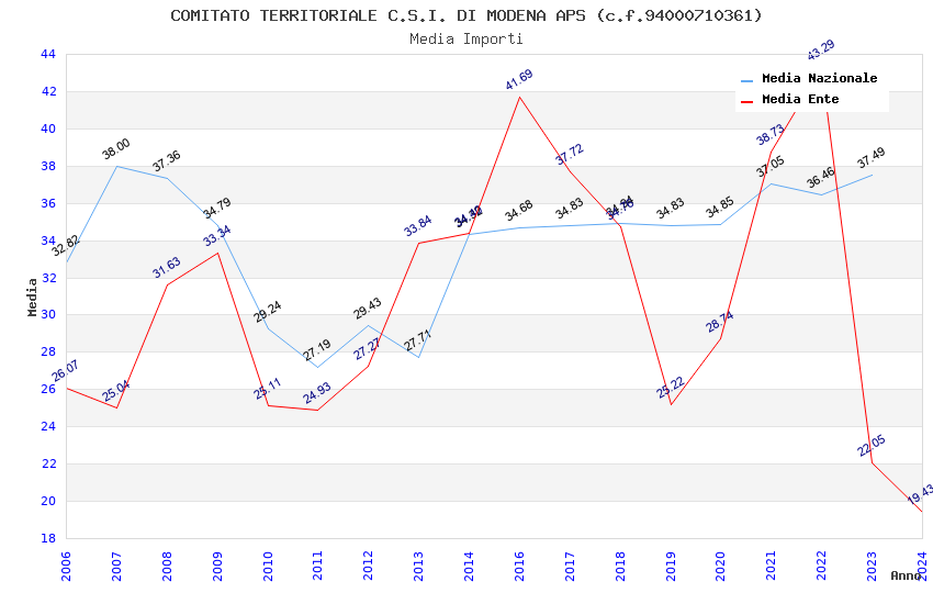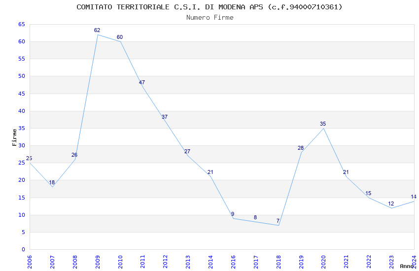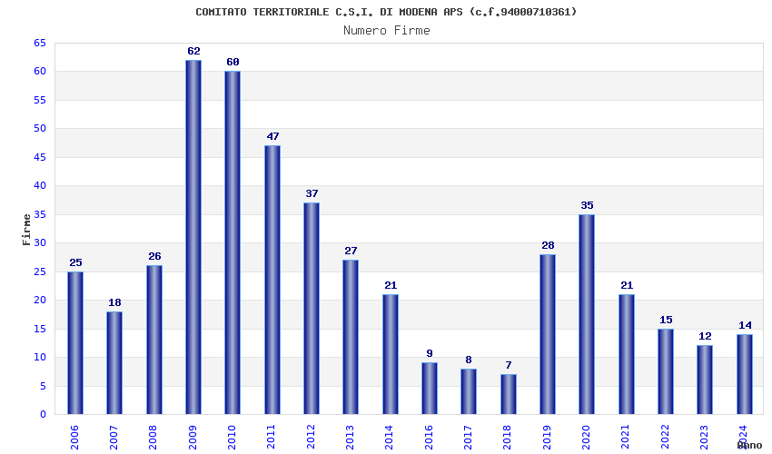 | Anno | Firme | Importi | Media | Naz. | Reg. | Prov. | Comu. |