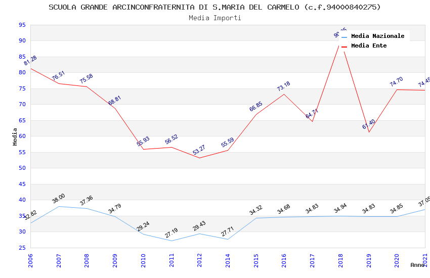 | Anno | Firme | Importi | Media | Naz. | Reg. | Prov. | Comu. |