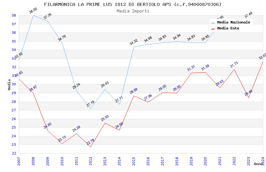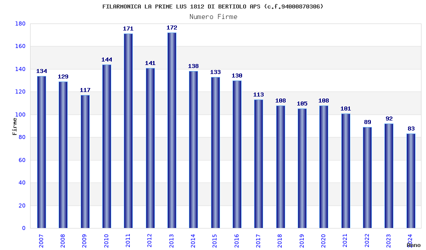 | Anno | Firme | Importi | Media | Naz. | Reg. | Prov. | Comu. |