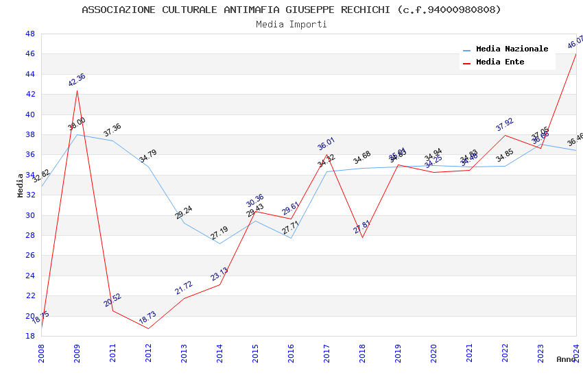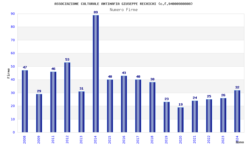 | Anno | Firme | Importi | Media | Naz. | Reg. | Prov. | Comu. |