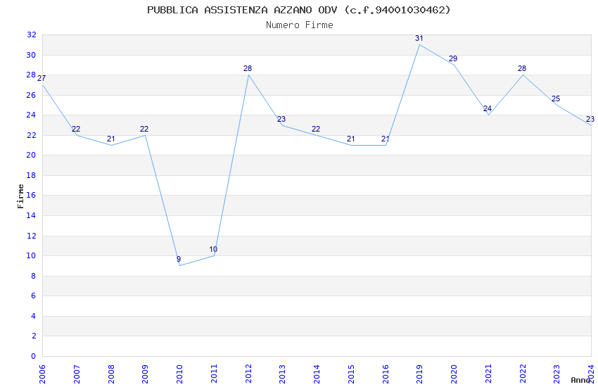 | 2013 | 23 | 335,73 | 14,60 | 38.255 | 2.494 | 245 | 10 |