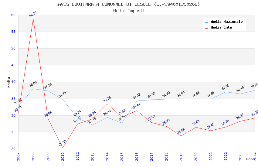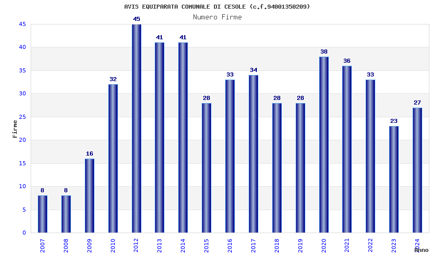 | Anno | Firme | Importi | Media | Naz. | Reg. | Prov. | Comu. |