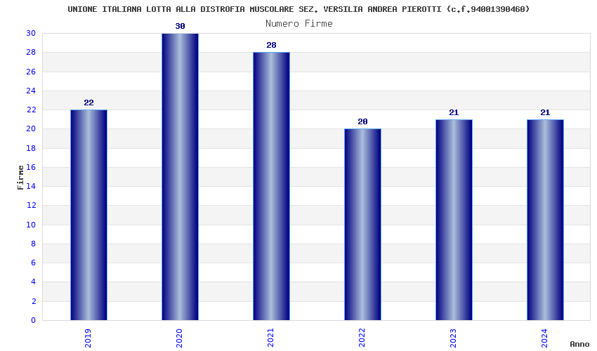 | Anno | Firme | Importi | Media | Naz. | Reg. | Prov. | Comu. |