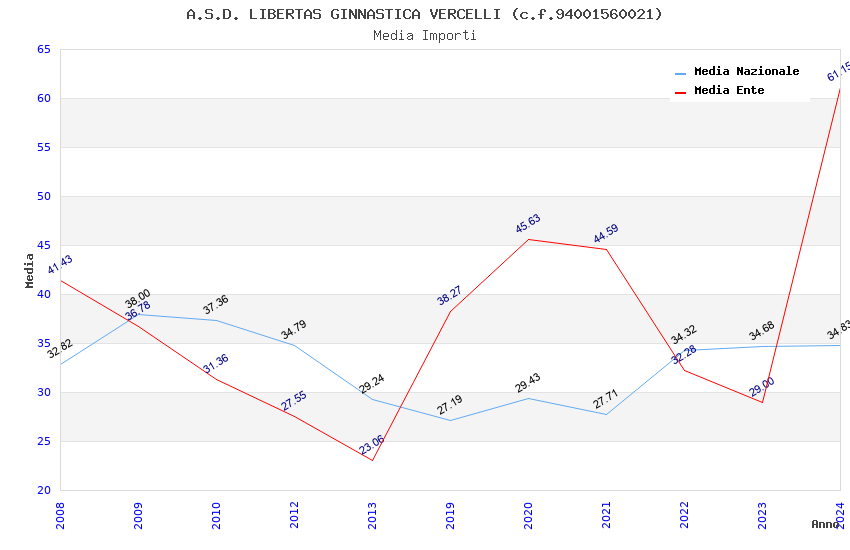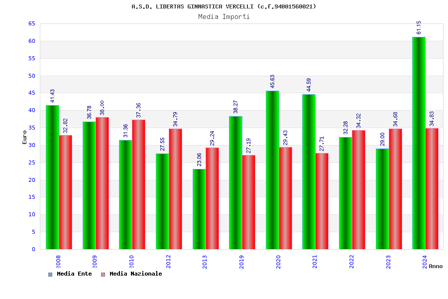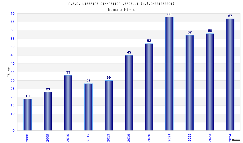 | Anno | Firme | Importi | Media | Naz. | Reg. | Prov. | Comu. |