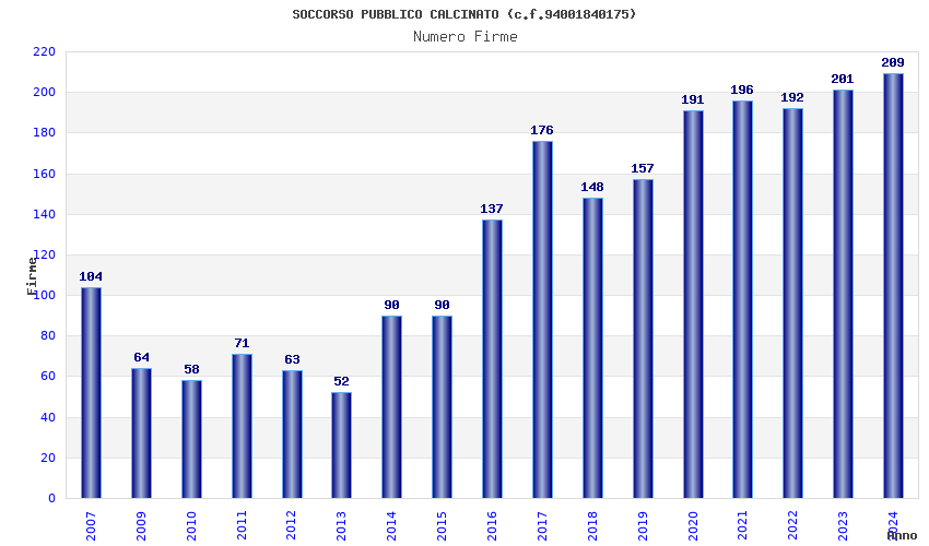 | Anno | Firme | Importi | Media | Naz. | Reg. | Prov. | Comu. |