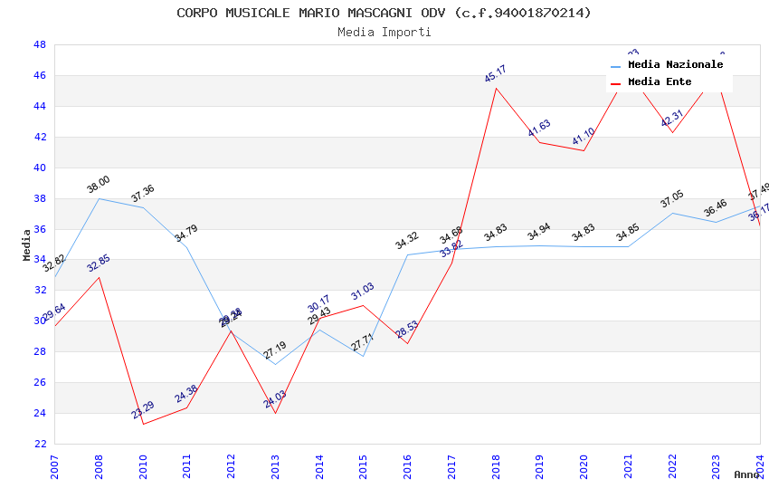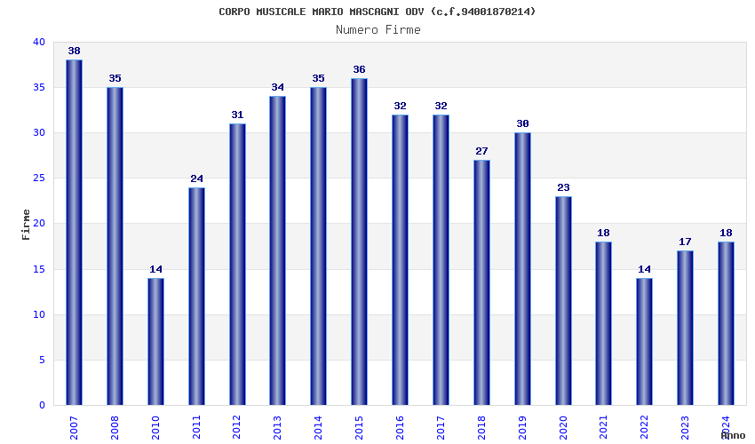 | Anno | Firme | Importi | Media | Naz. | Reg. | Prov. | Comu. |