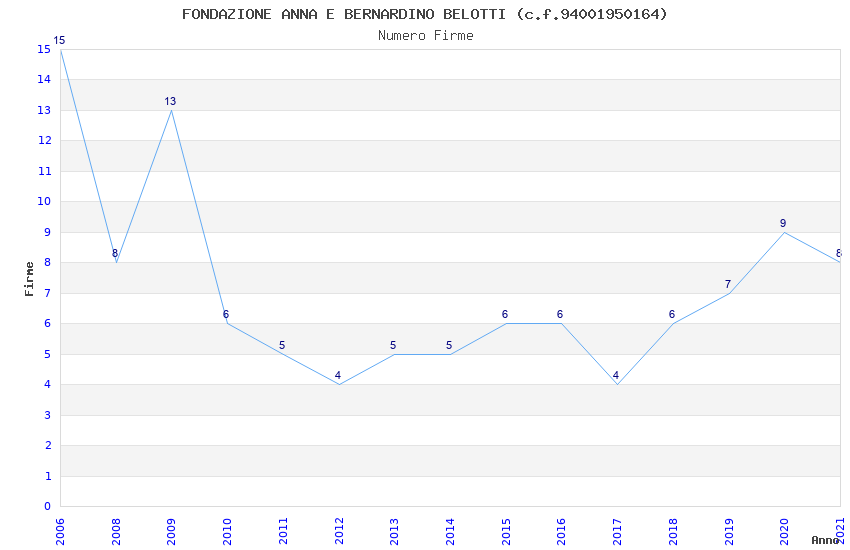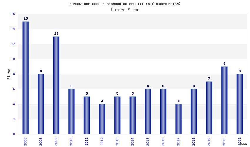 | Anno | Firme | Importi | Media | Naz. | Reg. | Prov. | Comu. |