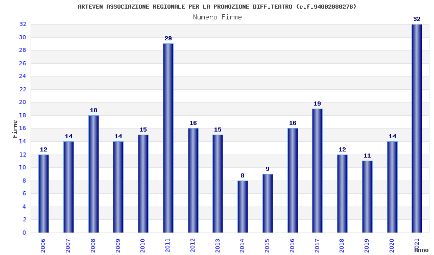 | Anno | Firme | Importi | Media | Naz. | Reg. | Prov. | Comu. |