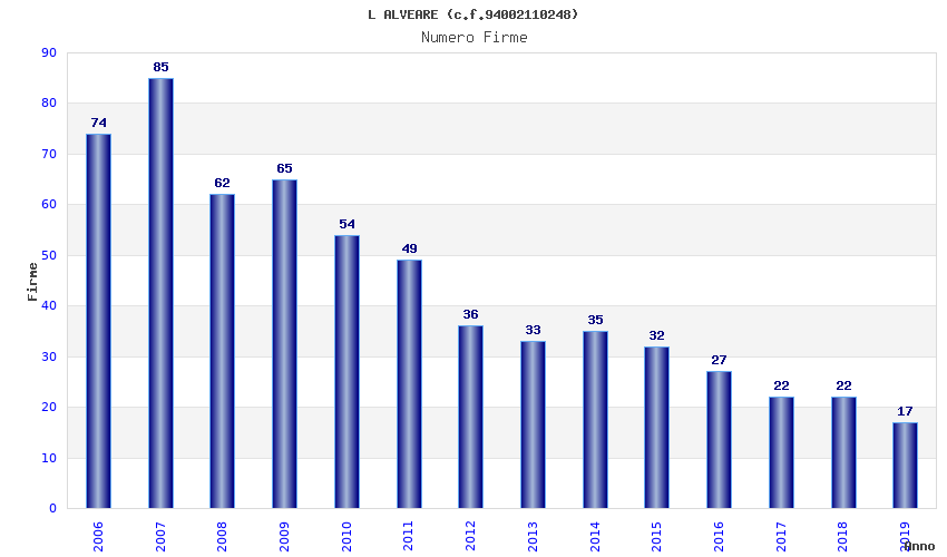 | Anno | Firme | Importi | Media | Naz. | Reg. | Prov. | Comu. |