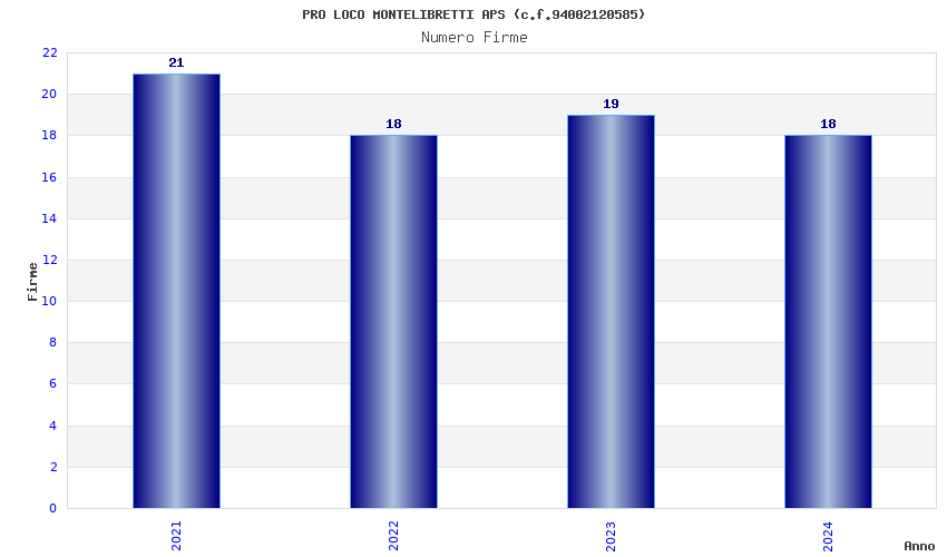 | Anno | Firme | Importi | Media | Naz. | Reg. | Prov. | Comu. |