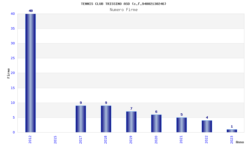 | Anno | Firme | Importi | Media | Naz. | Reg. | Prov. | Comu. |