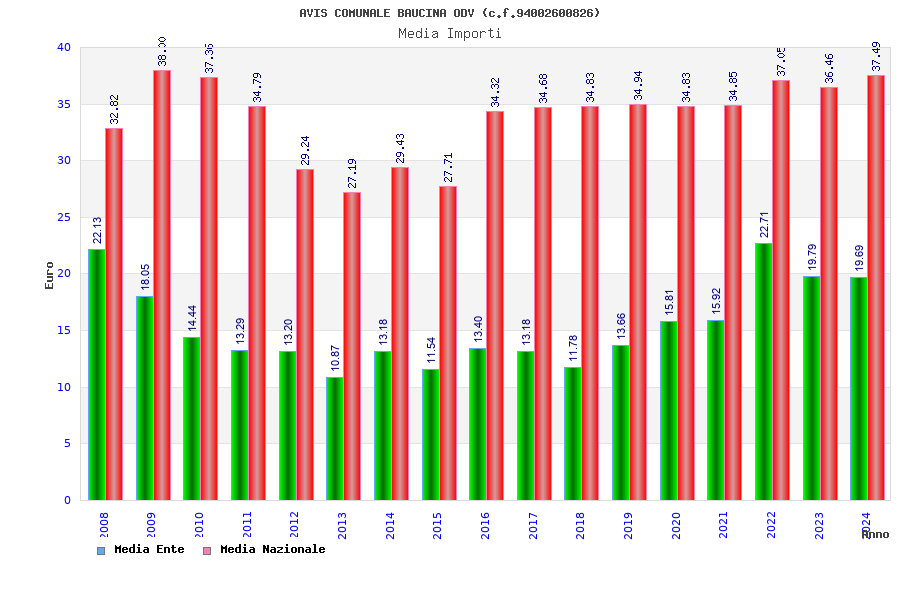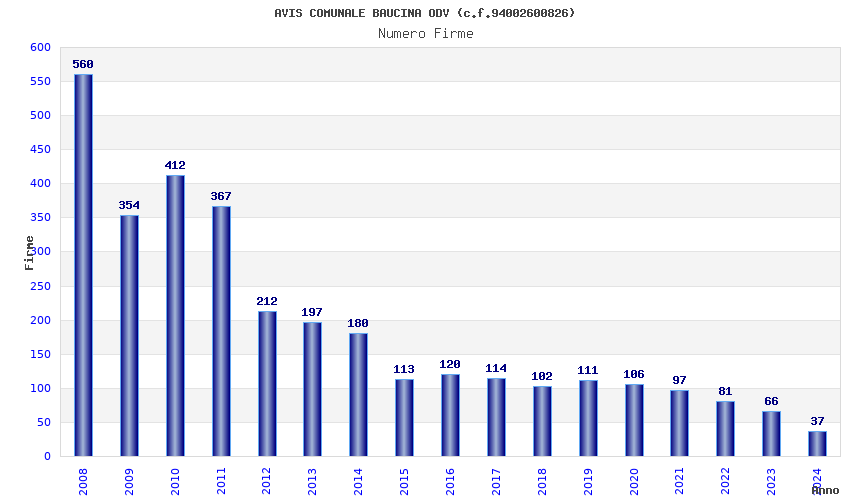 | Anno | Firme | Importi | Media | Naz. | Reg. | Prov. | Comu. |