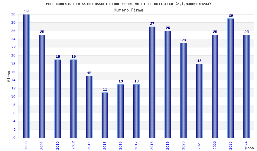 | Anno | Firme | Importi | Media | Naz. | Reg. | Prov. | Comu. |