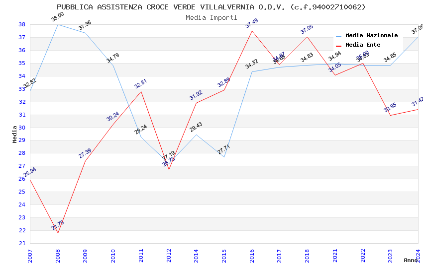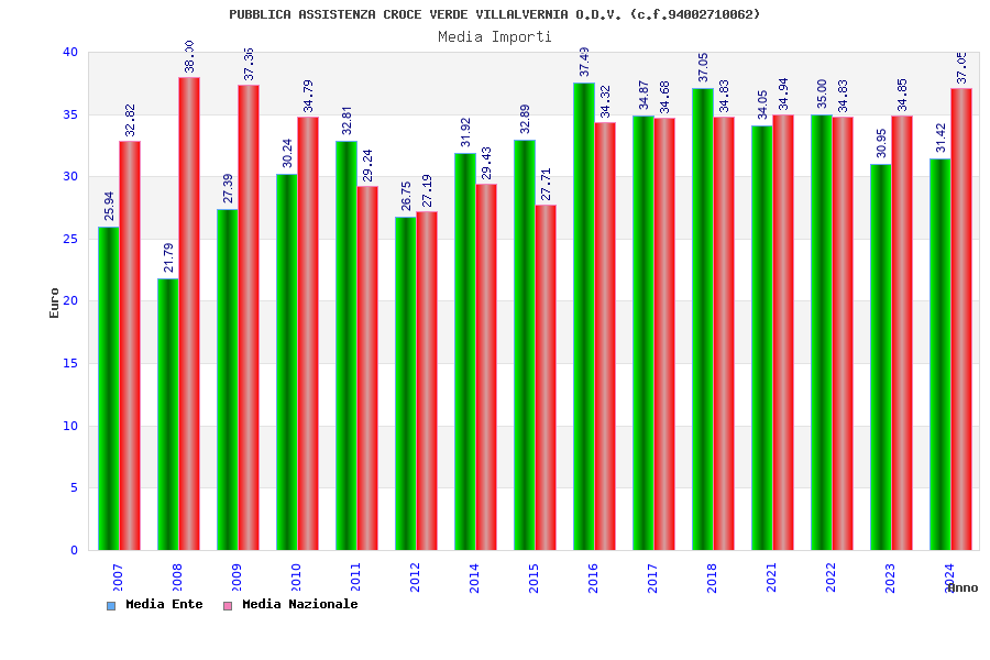 | Anno | Firme | Importi | Media | Naz. | Reg. | Prov. | Comu. |