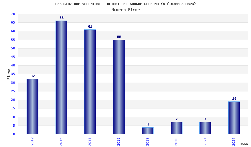 | Anno | Firme | Importi | Media | Naz. | Reg. | Prov. | Comu. |