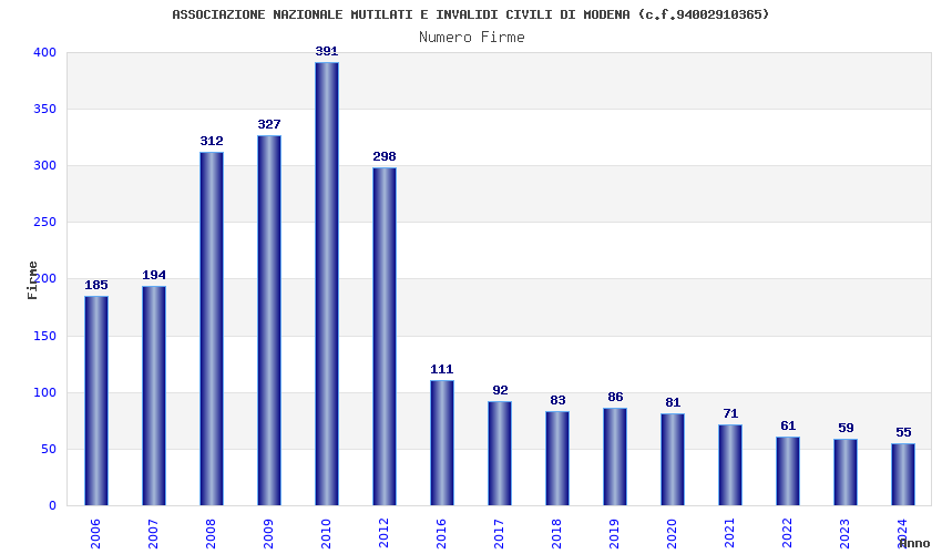 | Anno | Firme | Importi | Media | Naz. | Reg. | Prov. | Comu. |