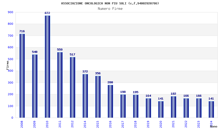 | Anno | Firme | Importi | Media | Naz. | Reg. | Prov. | Comu. |