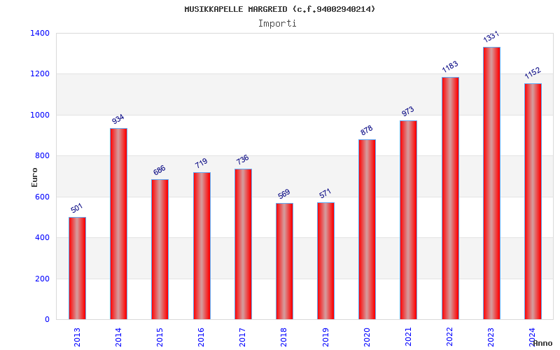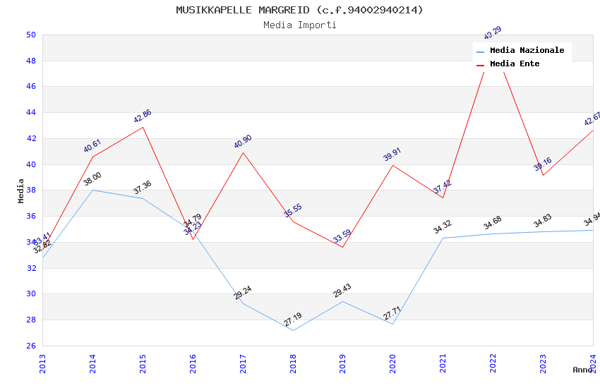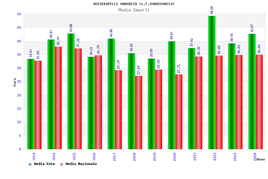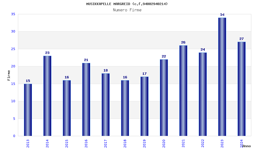 | Anno | Firme | Importi | Media | Naz. | Reg. | Prov. | Comu. |