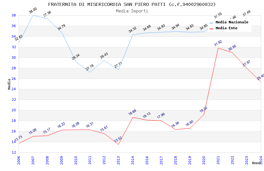 | Anno | Firme | Importi | Media | Naz. | Reg. | Prov. | Comu. |