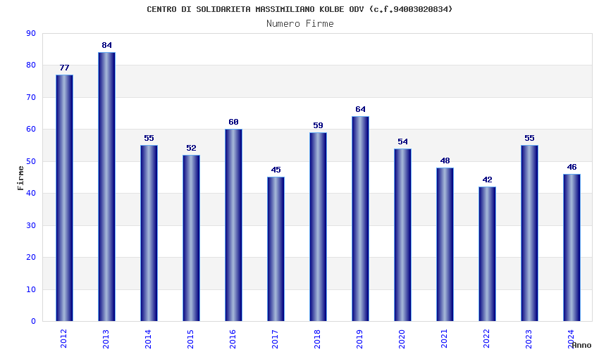 | Anno | Firme | Importi | Media | Naz. | Reg. | Prov. | Comu. |