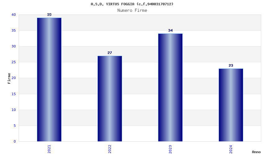 | Anno | Firme | Importi | Media | Naz. | Reg. | Prov. | Comu. |