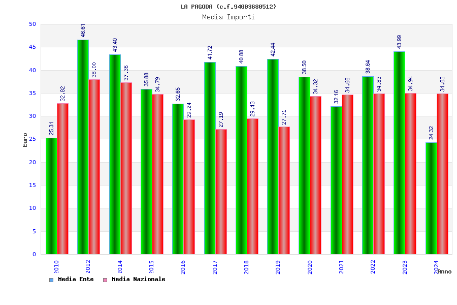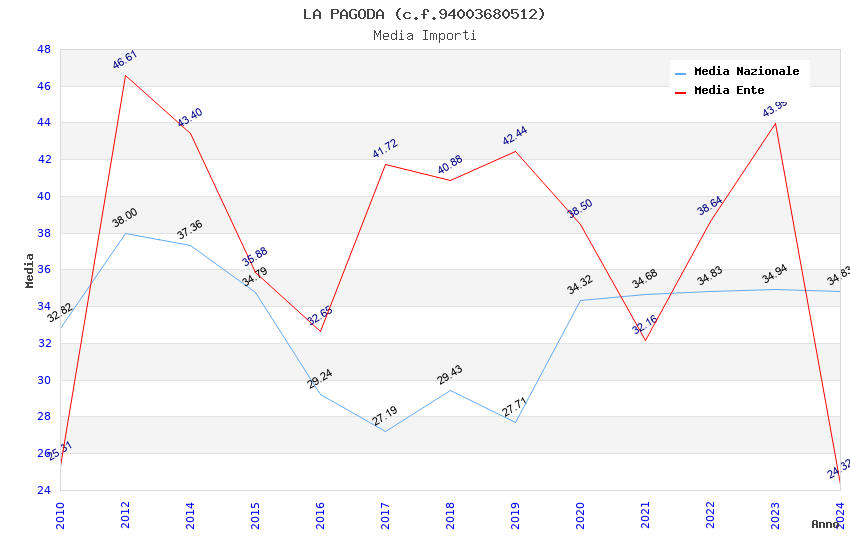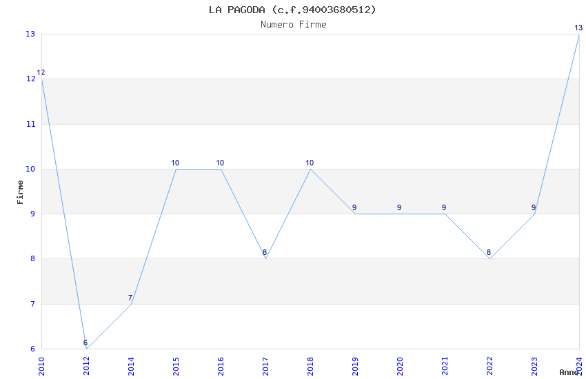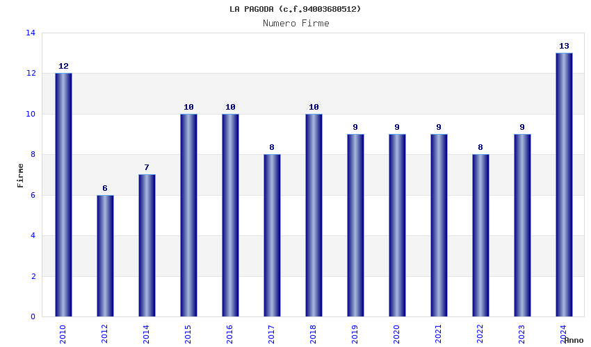 | Anno | Firme | Importi | Media | Naz. | Reg. | Prov. | Comu. |