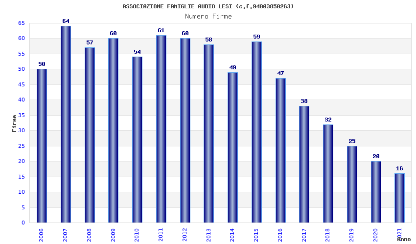 | Anno | Firme | Importi | Media | Naz. | Reg. | Prov. | Comu. |
