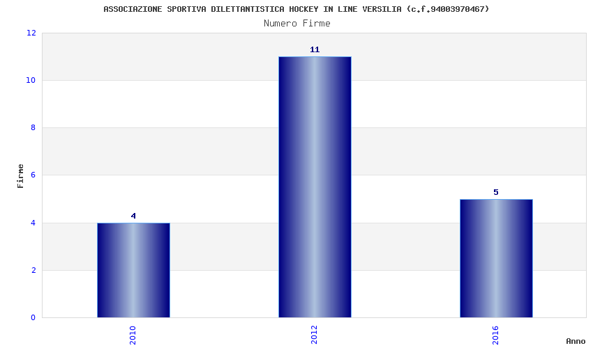 | Anno | Firme | Importi | Media | Naz. | Reg. | Prov. | Comu. |