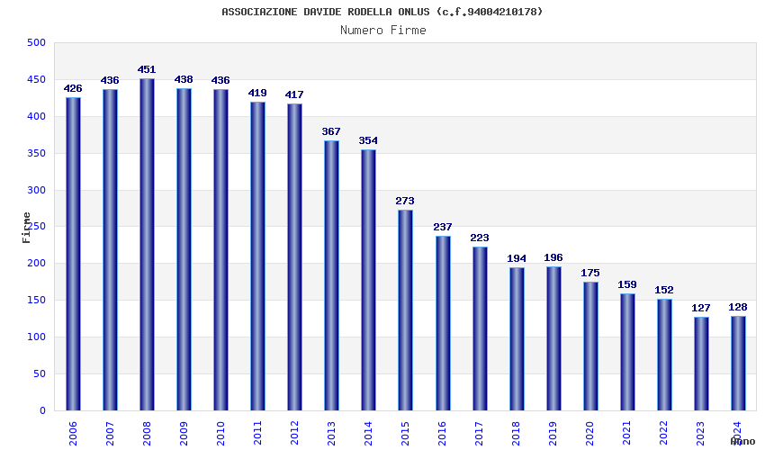 | Anno | Firme | Importi | Media | Naz. | Reg. | Prov. | Comu. |