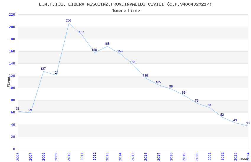 | 2010 | 206 | 5.618,75 | 27,28 | 7.419 | 140 | 69 | 46 |