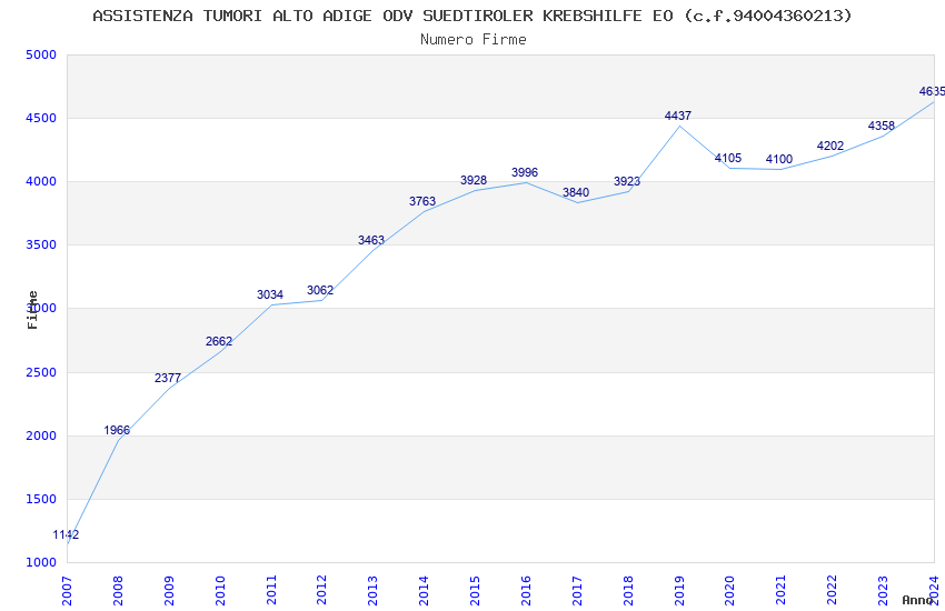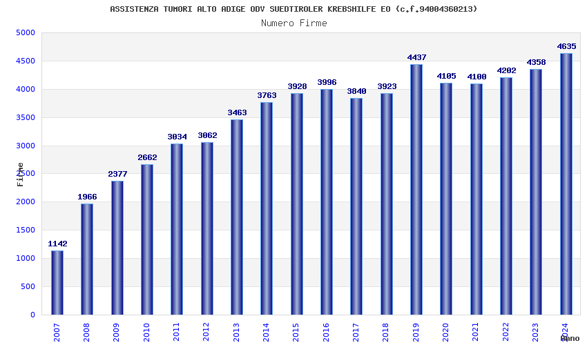 | Anno | Firme | Importi | Media | Naz. | Reg. | Prov. | Comu. |