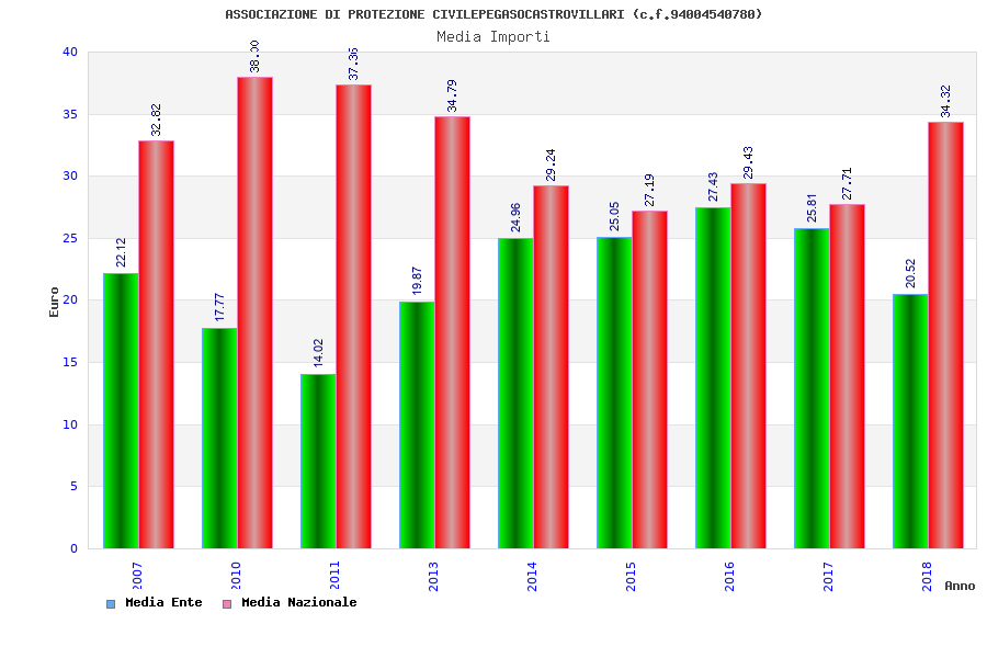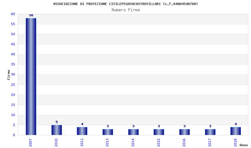 | Anno | Firme | Importi | Media | Naz. | Reg. | Prov. | Comu. |