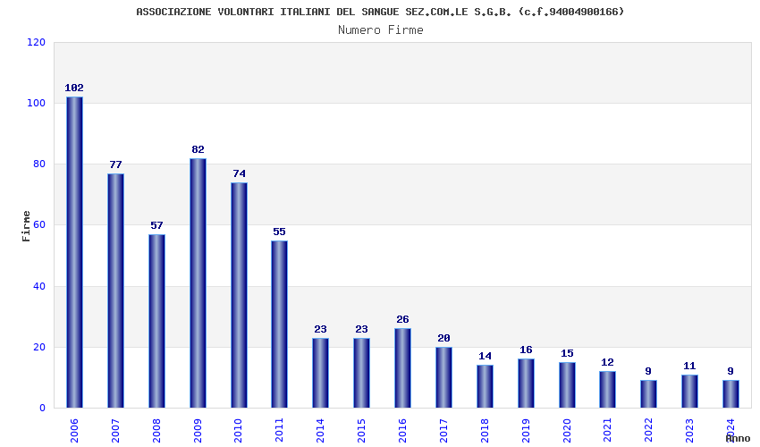 | Anno | Firme | Importi | Media | Naz. | Reg. | Prov. | Comu. |