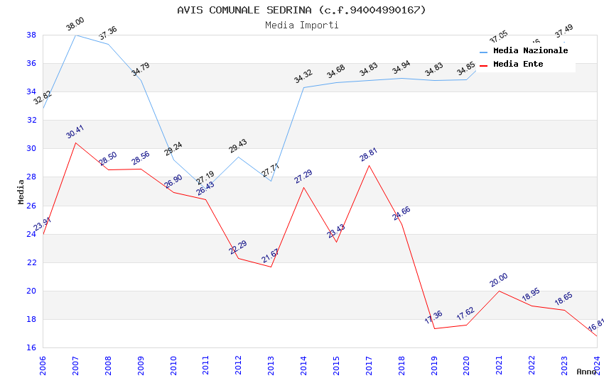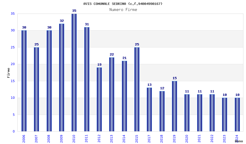 | Anno | Firme | Importi | Media | Naz. | Reg. | Prov. | Comu. |