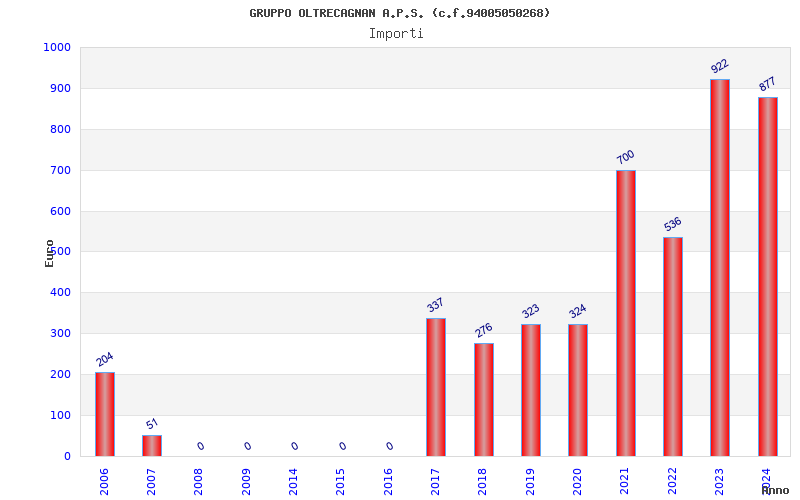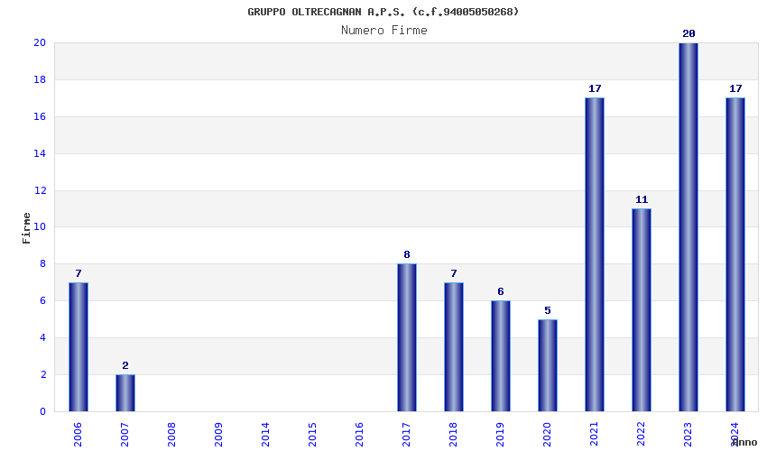 | Anno | Firme | Importi | Media | Naz. | Reg. | Prov. | Comu. |