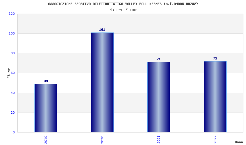 | Anno | Firme | Importi | Media | Naz. | Reg. | Prov. | Comu. |