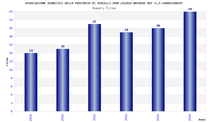 | Anno | Firme | Importi | Media | Naz. | Reg. | Prov. | Comu. |