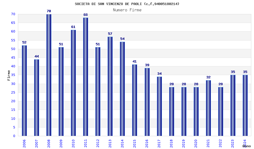 | Anno | Firme | Importi | Media | Naz. | Reg. | Prov. | Comu. |