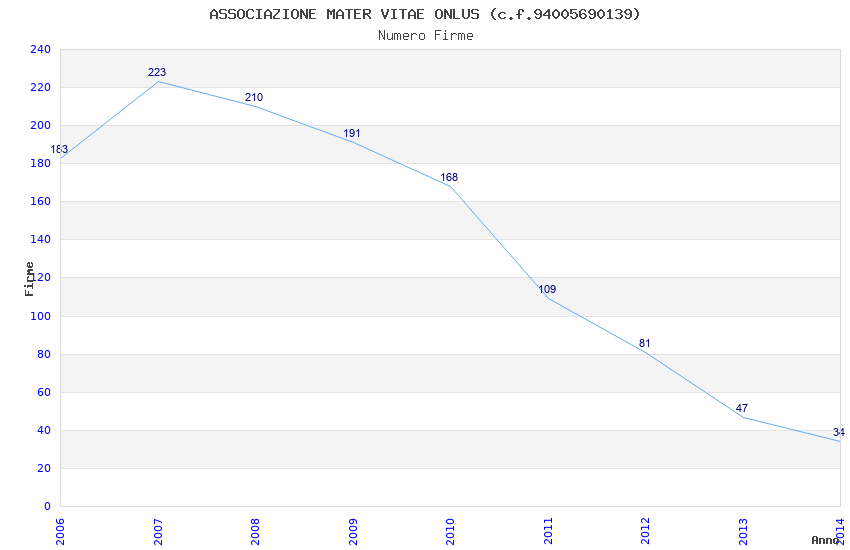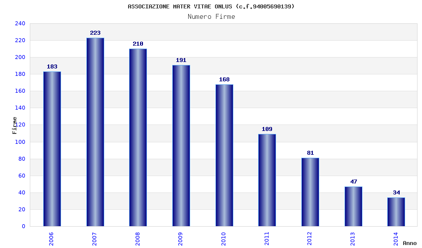 | Anno | Firme | Importi | Media | Naz. | Reg. | Prov. | Comu. |
