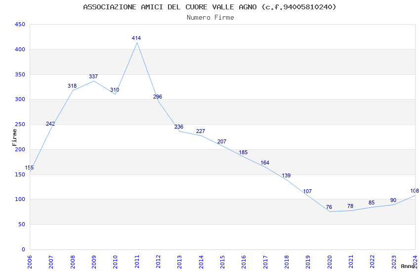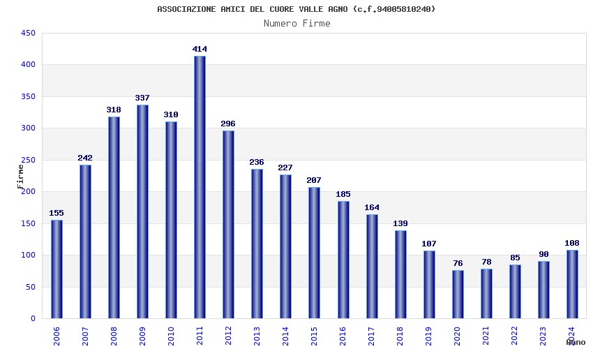 | Anno | Firme | Importi | Media | Naz. | Reg. | Prov. | Comu. |